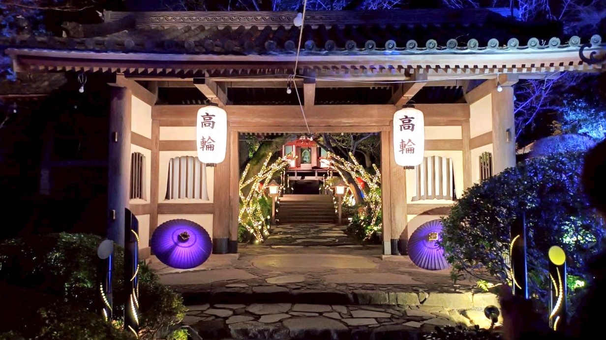 山門のライトアップも綺麗です。
