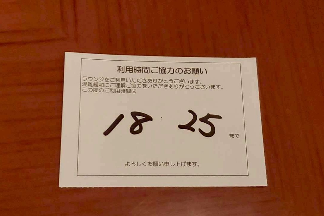 混雑緩和のため、45分制の案内をされ利用時間が記載されたカードをもらいました。