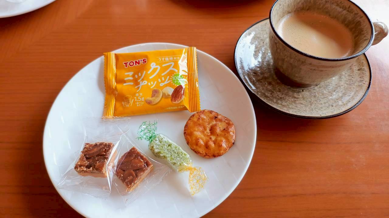 ティータイムでは和菓子や和スイーツ、個包装のスナックと共に、紅茶・コーヒー・アルコールを楽しむことができます。