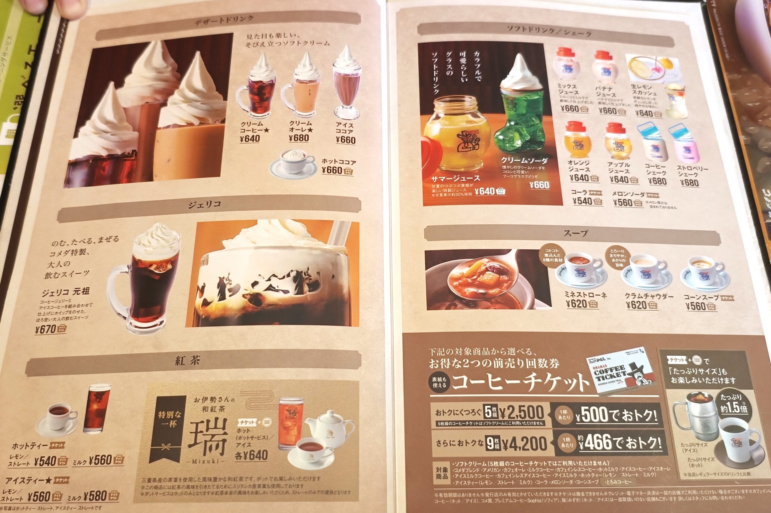 フードのお供に、コメダ珈琲のドリンクメニューがこちら。