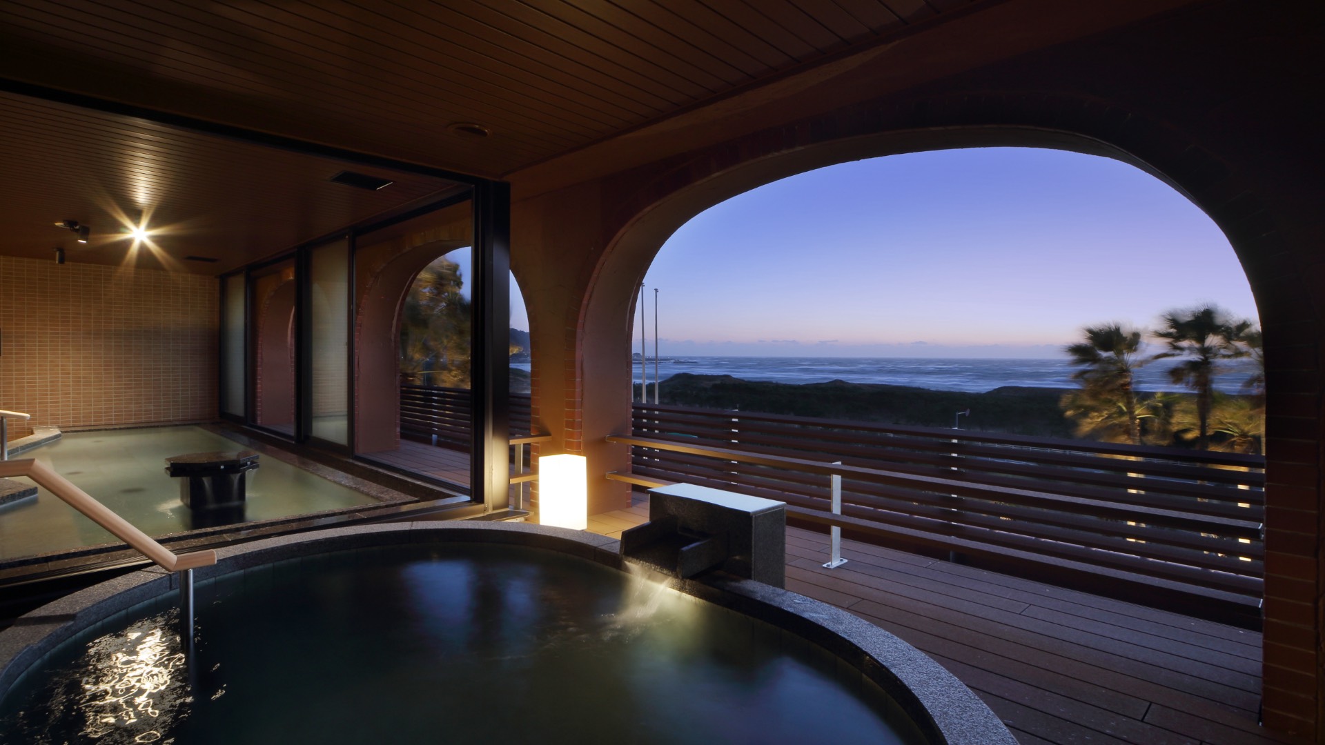 露天風呂から一望できる、海と朝焼けの空は最高でした!