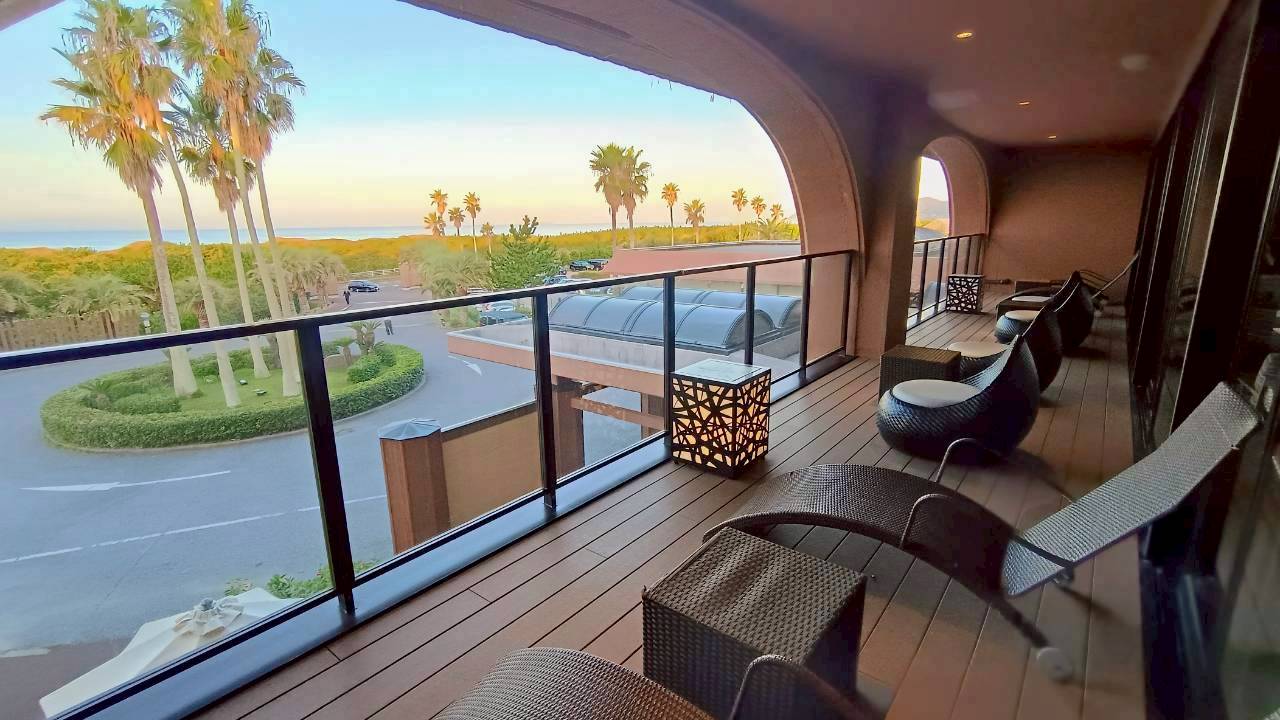 静かな朝の時間にテラスの椅子に座って、空と海を眺めゆっくりくつろぐ至福の時間♡